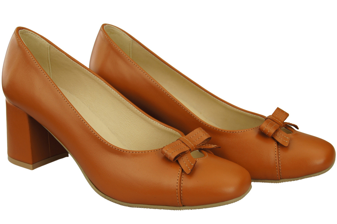Opinie o Czółenka Damskie z Kokardką Rude Skóra Naturalna i Niski Obcas 203 ElitaBut