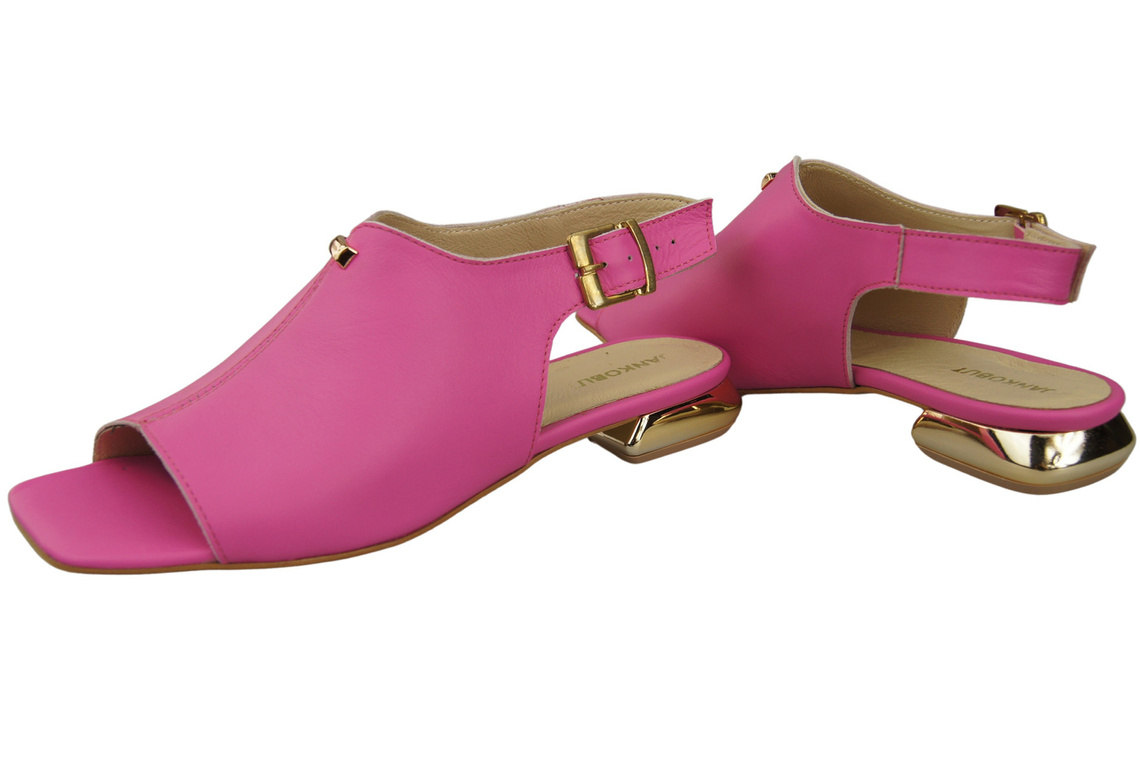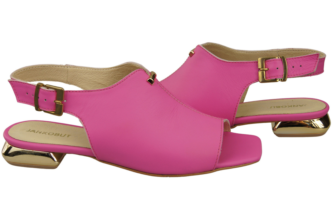 Wygodne Obuwie Damskie Sandały Fuksja Płaski Złoty Obcas Skóra naturalna 207 ElitaBut