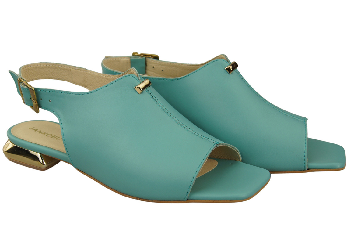 Wygodne Obuwie Damskie Sandały Turkusowe Płaski Złoty Obcas Skóra naturalna 207 ElitaBut