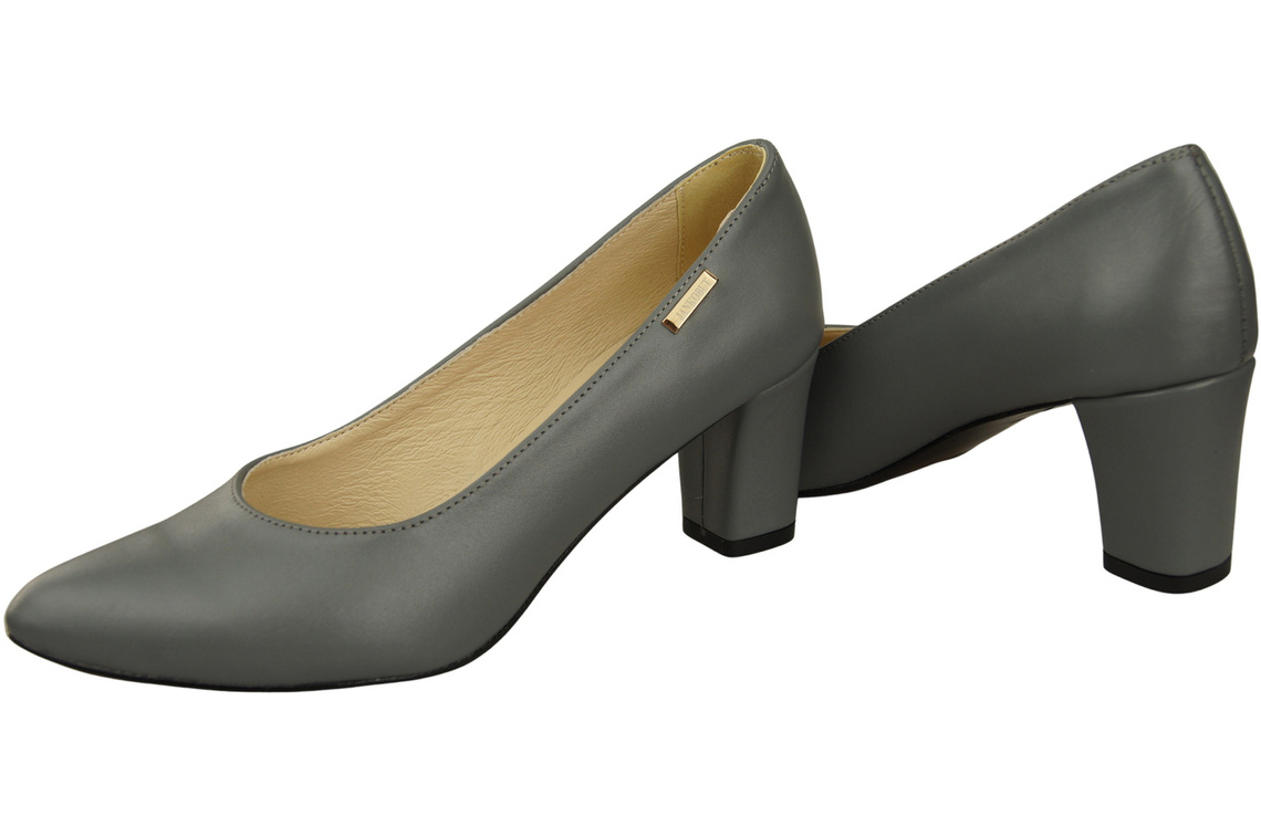 Opinie o Klasyczne Gładkie Buty Czółenka Damskie Popielate z Naturalnej Skóry 213 ElitaBut