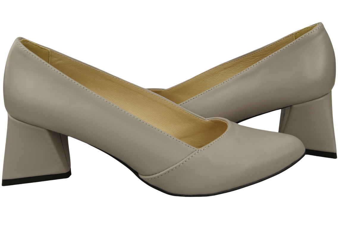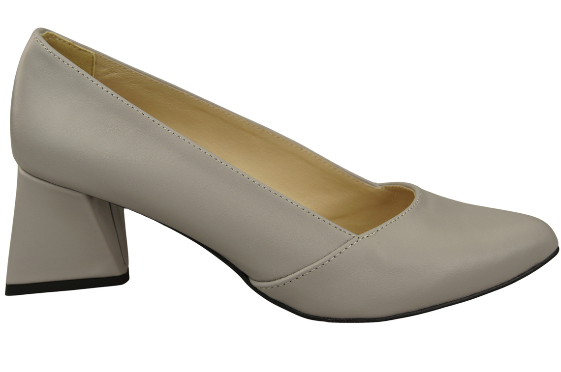 Czółenka Damskie Jasny Popiel Skóra Naturalna Spiczasty Nosek Obcas ElitaBut 221