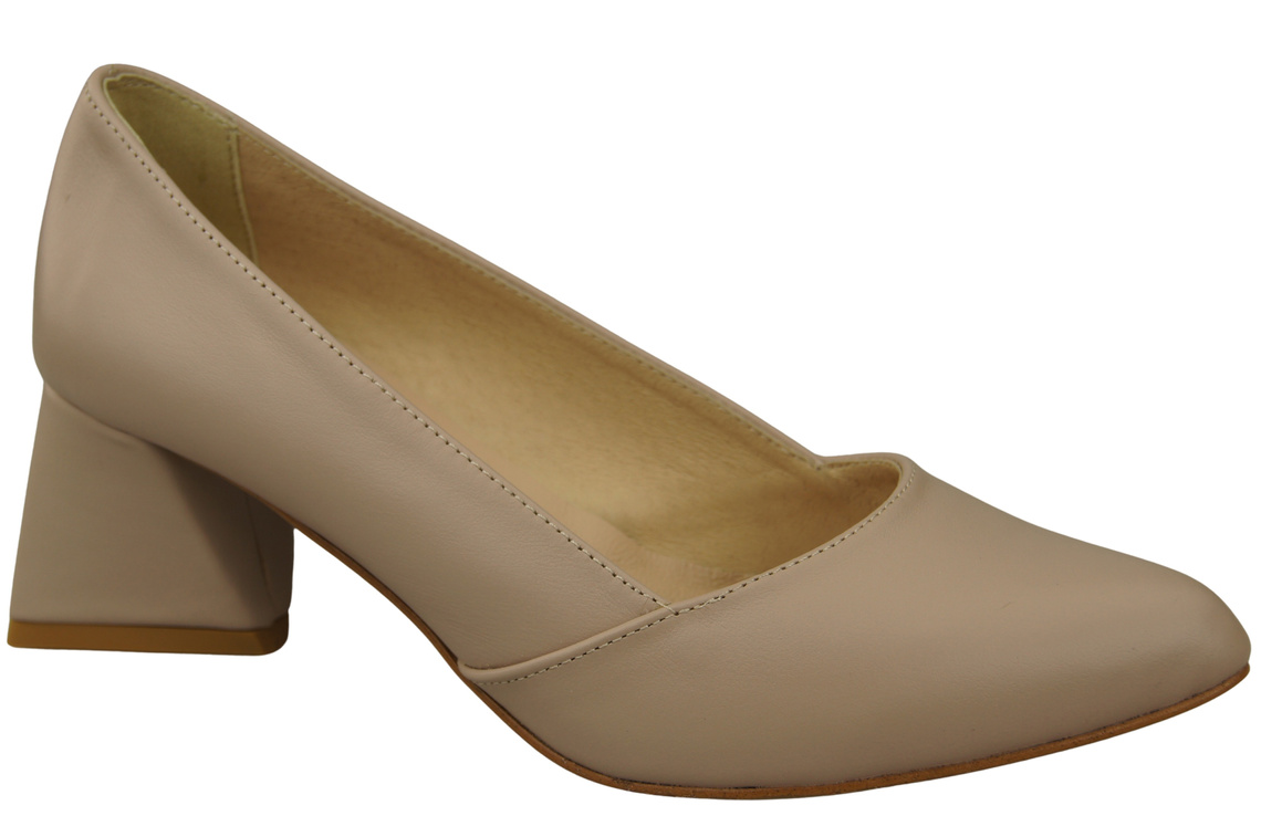 Czółenka Damskie Cappuccino Jasne Skóra Naturalna Spiczasty Nosek Obcas ElitaBut 221