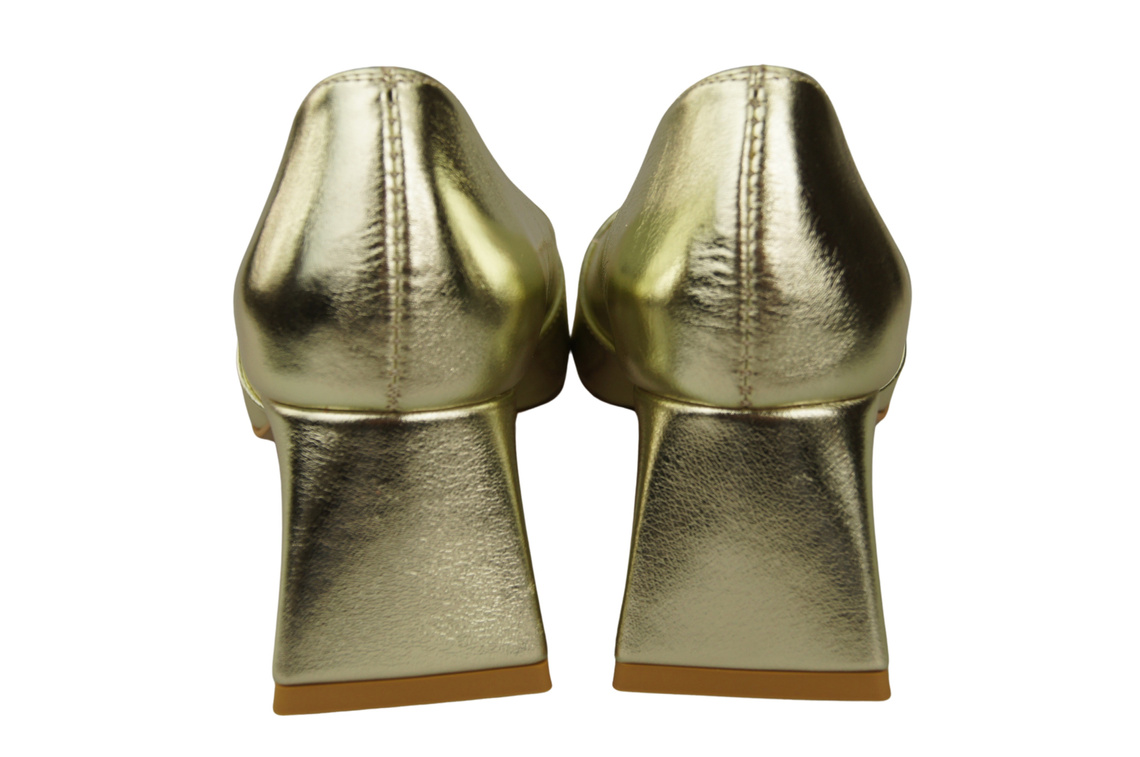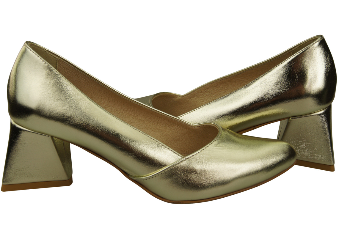 Czółenka Damskie Złote Skóra Naturalna Spiczasty Nosek Obcas ElitaBut 221
