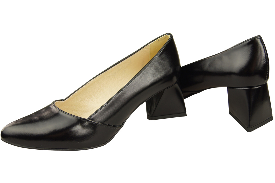 Czółenka Damskie Czarne Błyszczące Skóra Naturalna Spiczasty Nosek Obcas ElitaBut 221
