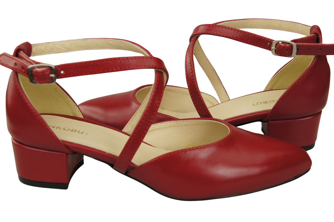Sandały Damskie Skórzane Czerwone z Paskami Na Niskim Obcasie 223 ElitaBut