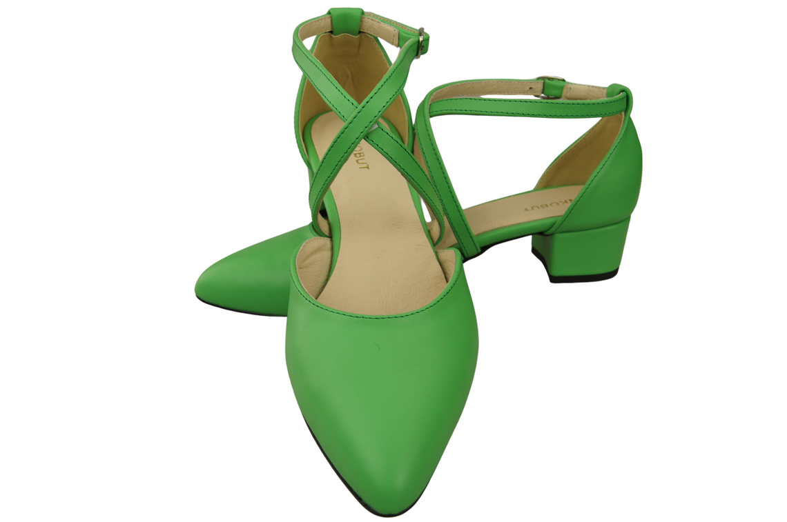 Sandały Damskie Skórzane Limonkowe z Paskami Na Niskim Obcasie 223 ElitaBut