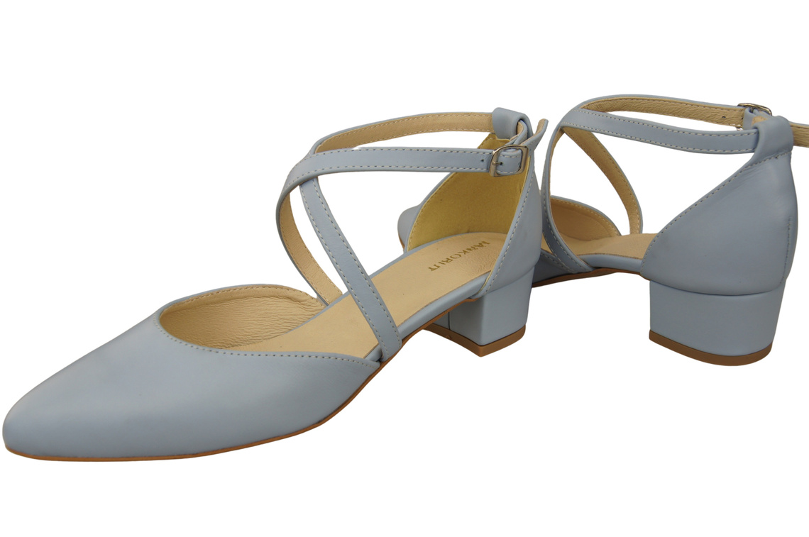 Sandały Damskie Skórzane Jasny Błękit z Paskami Na Niskim Obcasie 223 ElitaBut