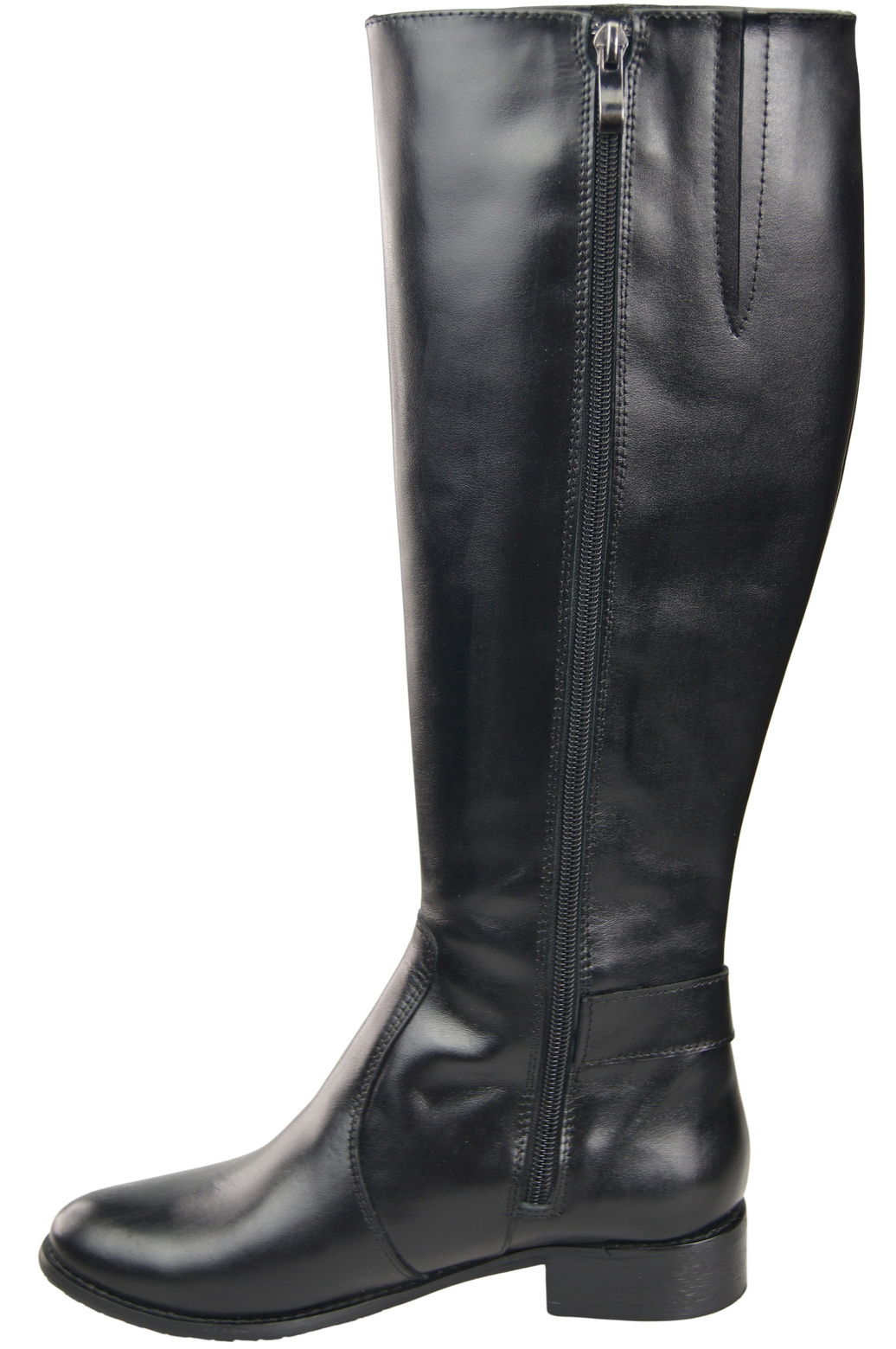 Szukasz uniwersalnych kozaków na chłodniejsze dni? Te skórzane oficerki łączą ponadczasową linię z codziennym komfortem. Gładka, wysokiej jakości skóra licowa pięknie układa się na łydce, a płaska podeszwa i niski obcas gwarantują stabilność podczas całodziennego noszenia. W środku miękka ocieplina, która przyjemnie ogrzewa bez zbędnego zwiększania objętości buta. Zamek wszyty wzdłuż cholewki ułatwia zakładanie, a ozdobny pasek z metalową klamrą subtelnie podkreśla elegancki charakter modelu.