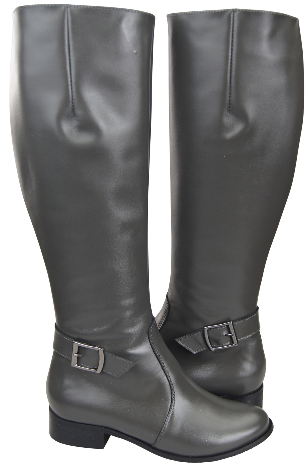 Skórzane Kozaki Damskie Grafitowe Ocieplane Oficerki, Płaskie 225 ElitaBut