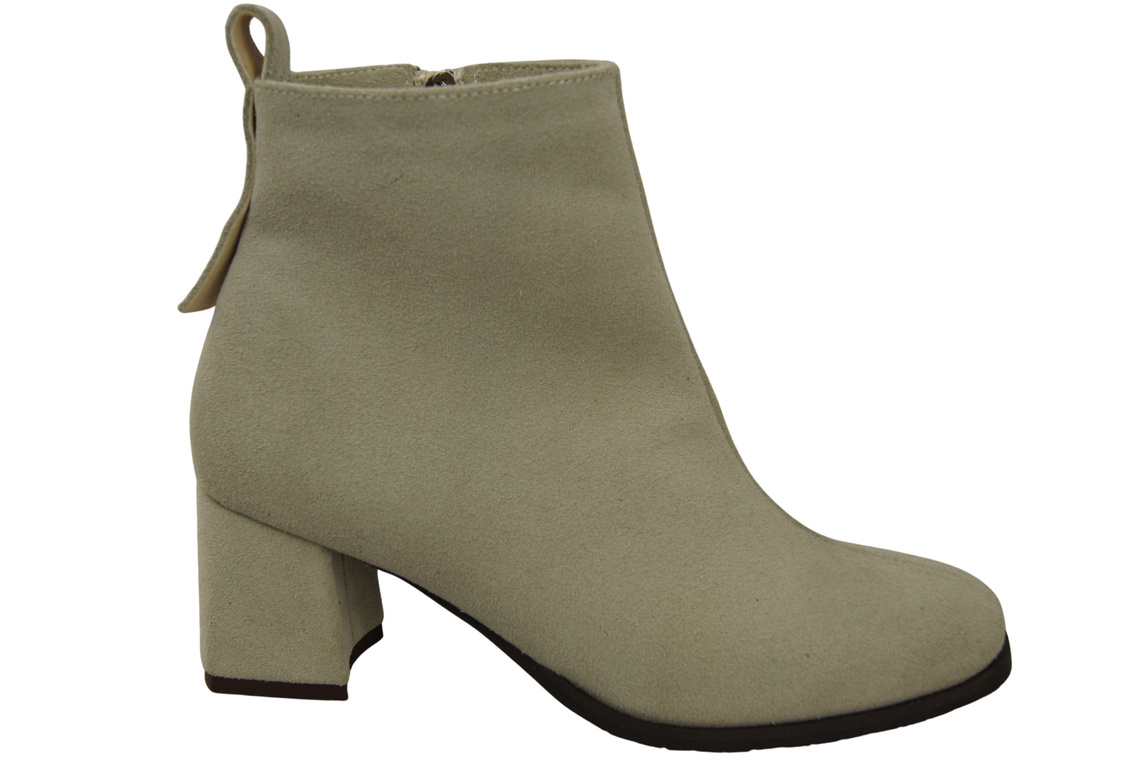 Minimalistyczne, eleganckie botki wykonane ze szlachetnej skóry naturalnej welurowej. Średni, stabilny obcas-słupek zapewnia wygodę przez cały dzień, a zamek po boku ułatwia szybkie zakładanie. Subtelna kokardka na pięcie dodaje kobiecego akcentu. Idealne do sukienek i spodni – na co dzień i na wyjścia. Polska marka ElitaBut – 24-miesięczna gwarancja producenta.