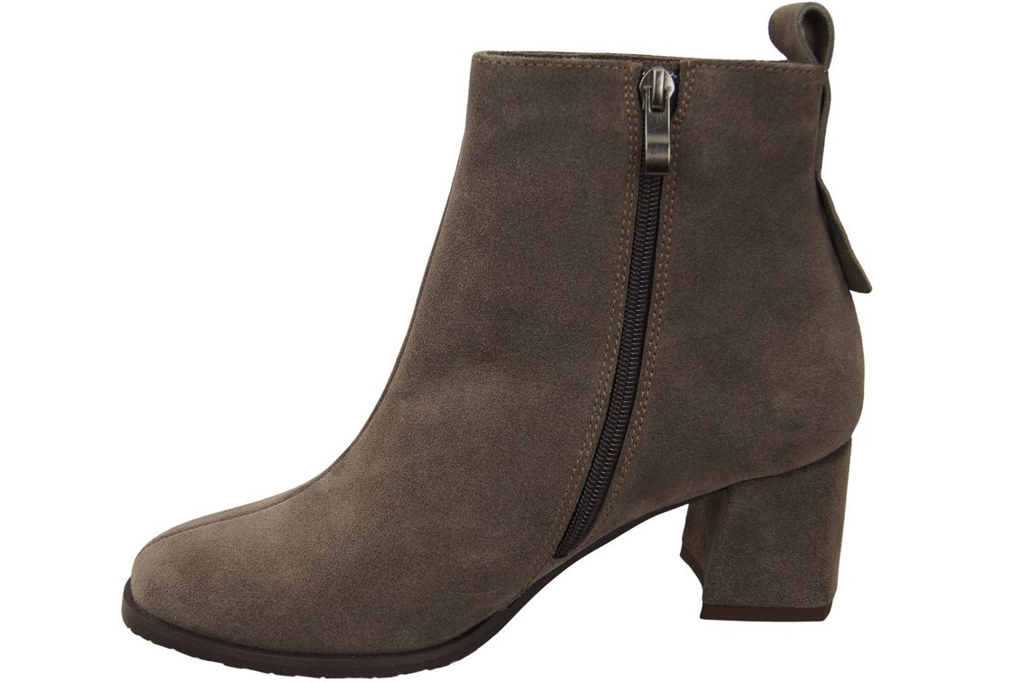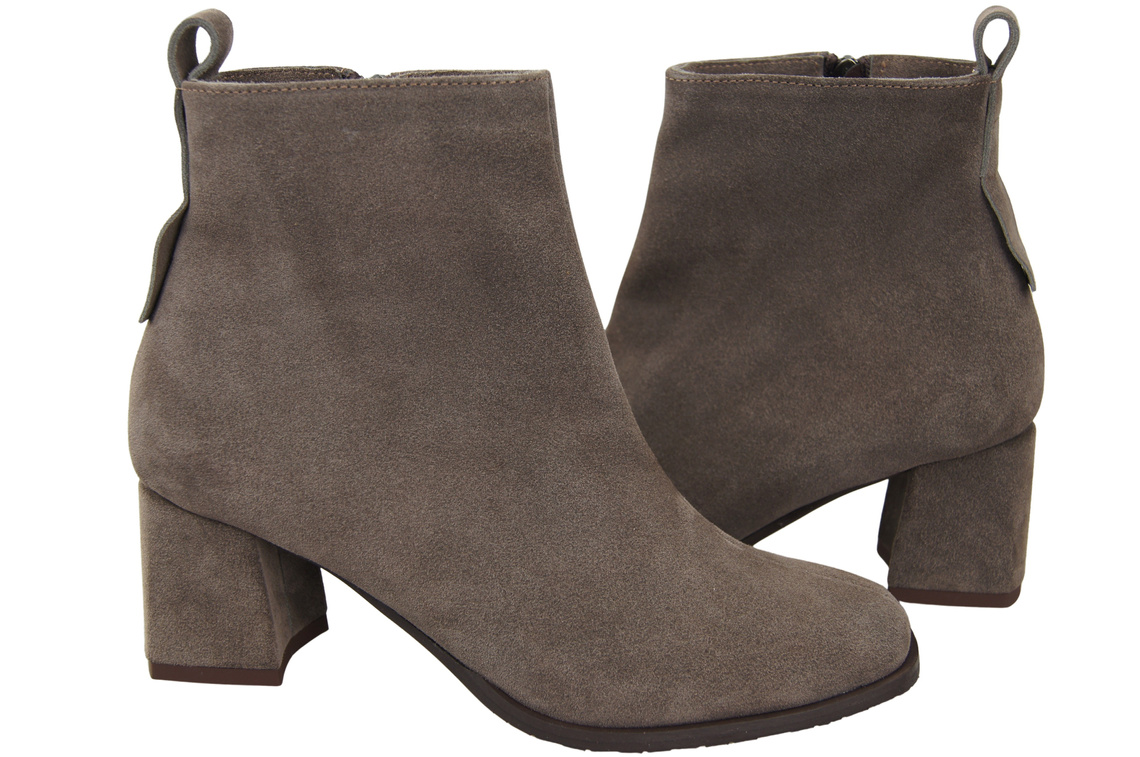 Botki Damskie Brązowe ze Skóry Naturalnej Welurowej na Stabilnym Słupku z Zamkiem 224 ElitaBut