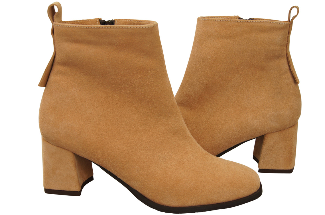 Botki Damskie Brzoskwiniowy ze Skóry Naturalnej Welurowej na Stabilnym Słupku z Zamkiem 224 ElitaBut