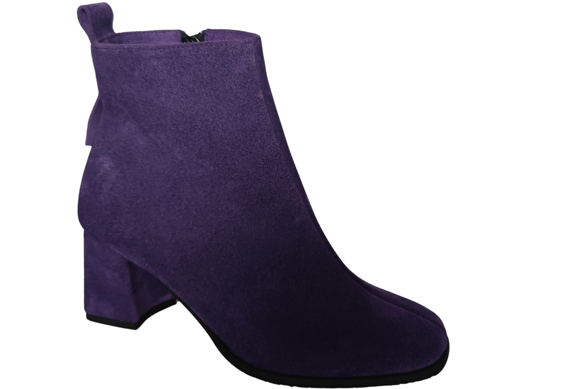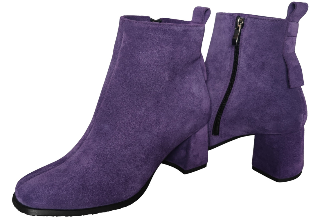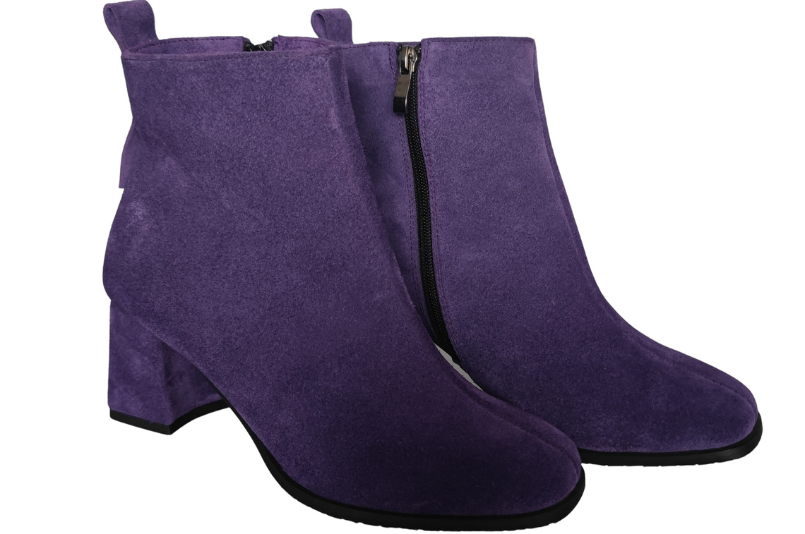 Botki Damskie Fioletowe ze Skóry Naturalnej Welurowej na Stabilnym Słupku z Zamkiem 224 ElitaBut