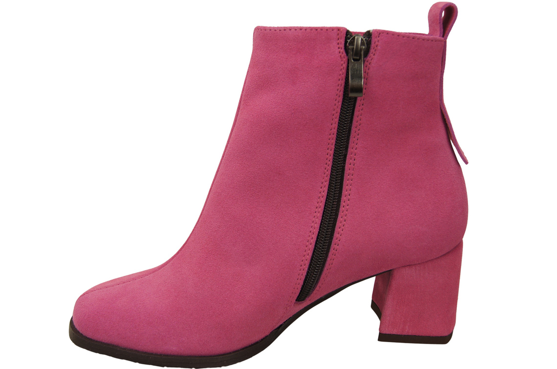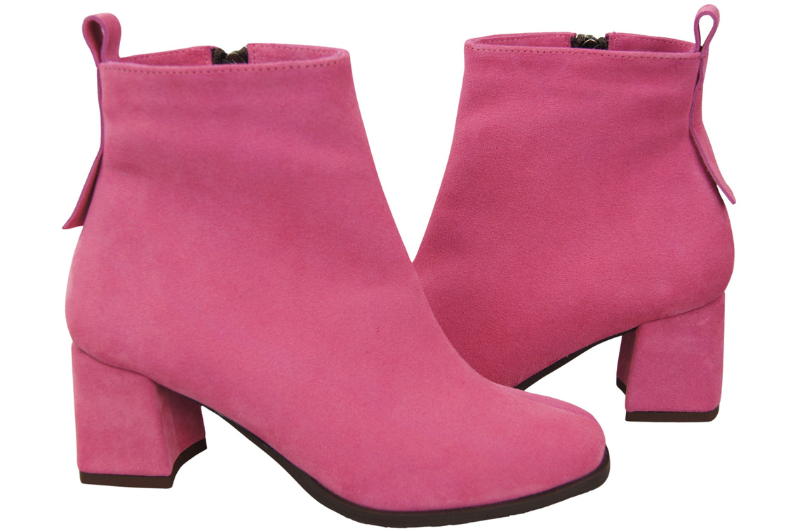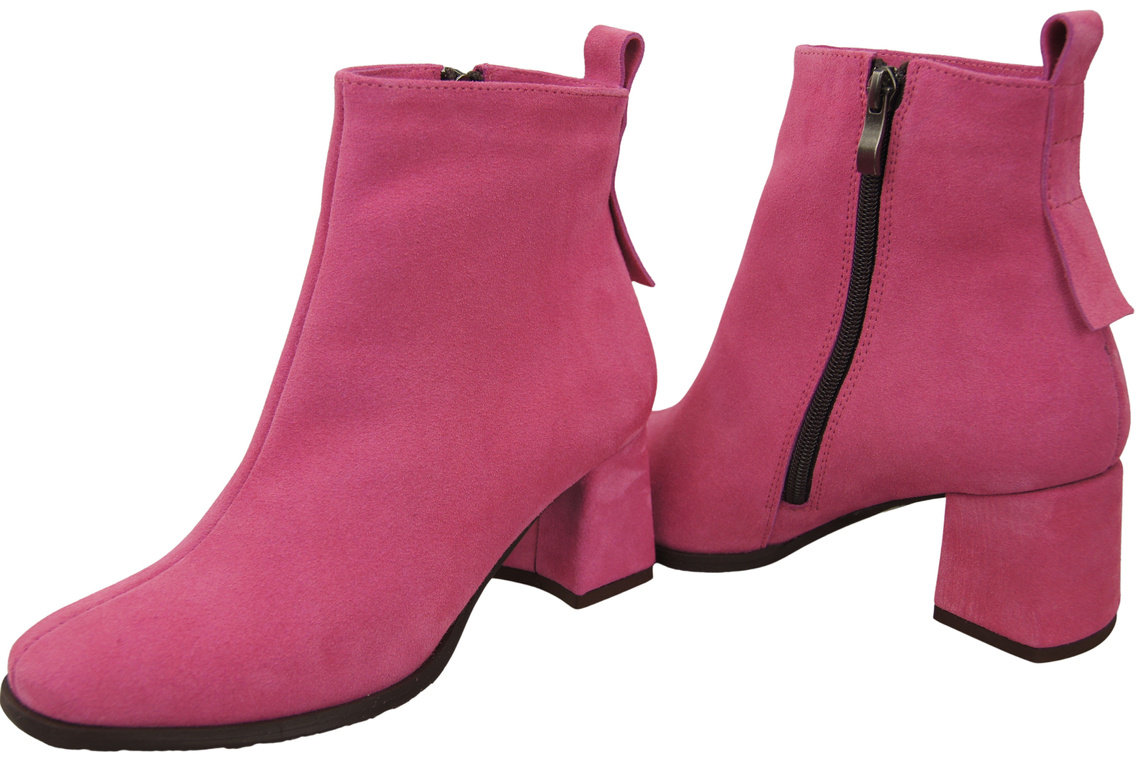 Botki Damskie Fuksja ze Skóry Naturalnej Welurowej na Stabilnym Słupku z Zamkiem 224 ElitaBut