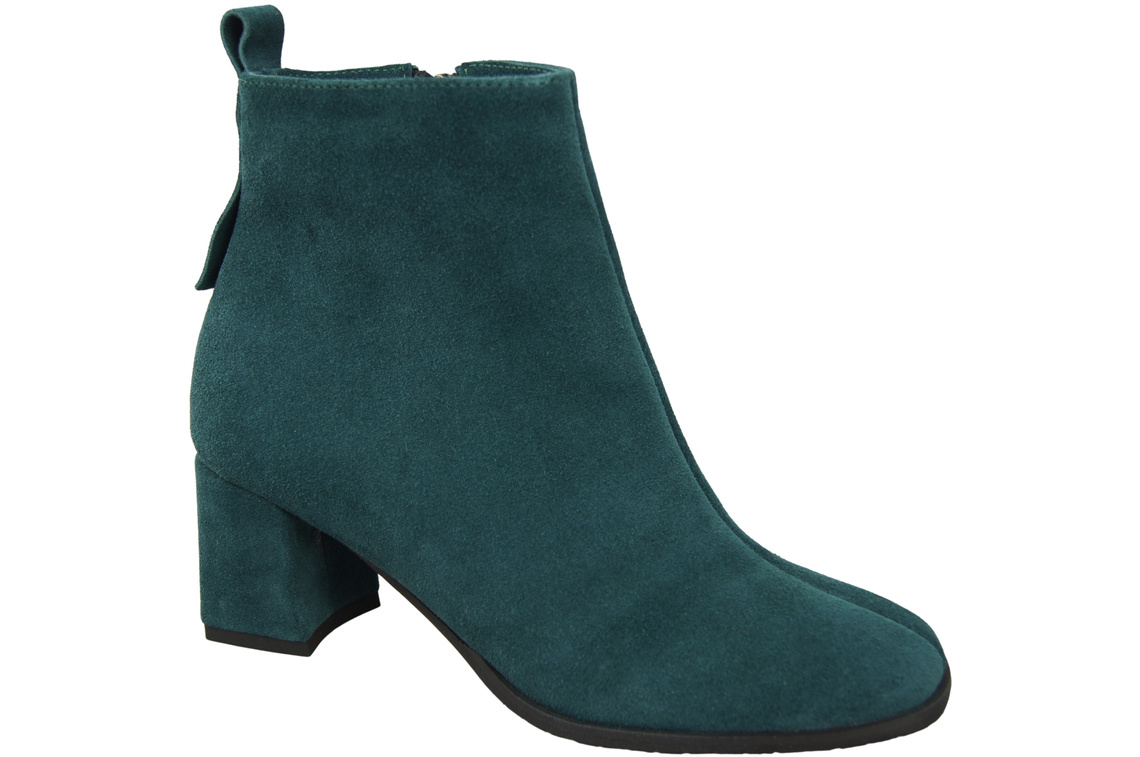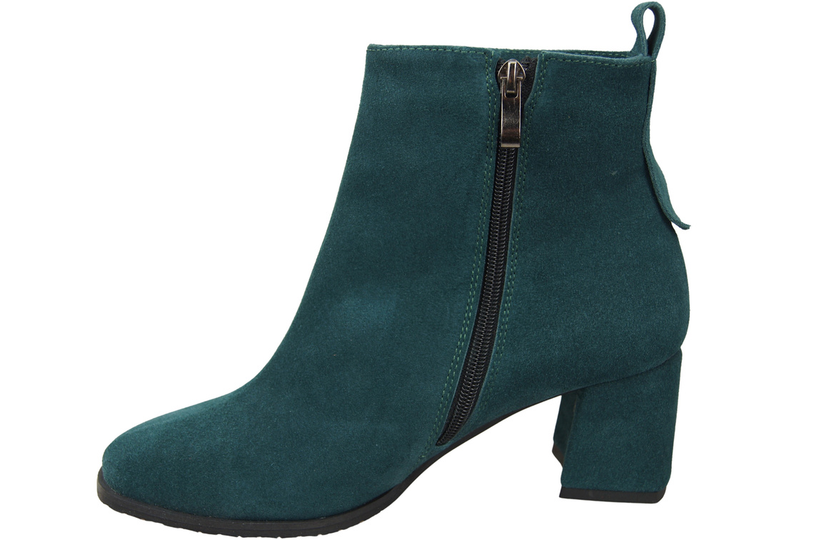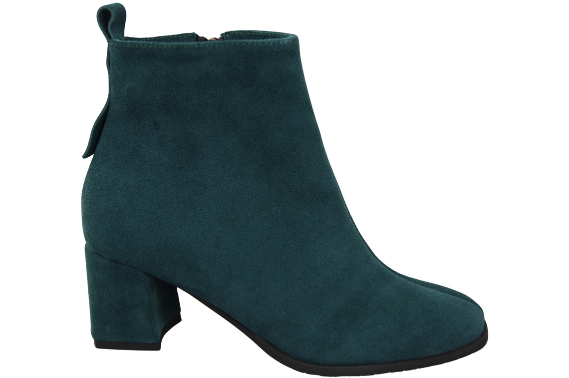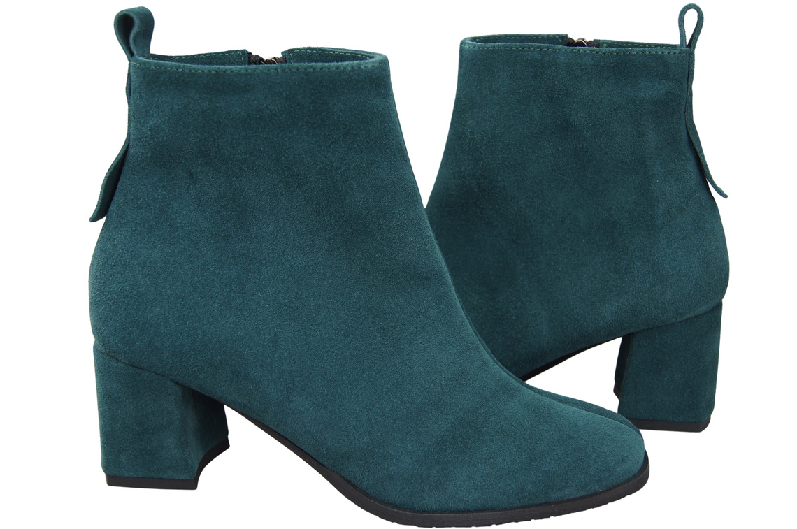 Botki Damskie Malachitowe ze Skóry Naturalnej Welurowej na Stabilnym Słupku z Zamkiem 224 ElitaBut