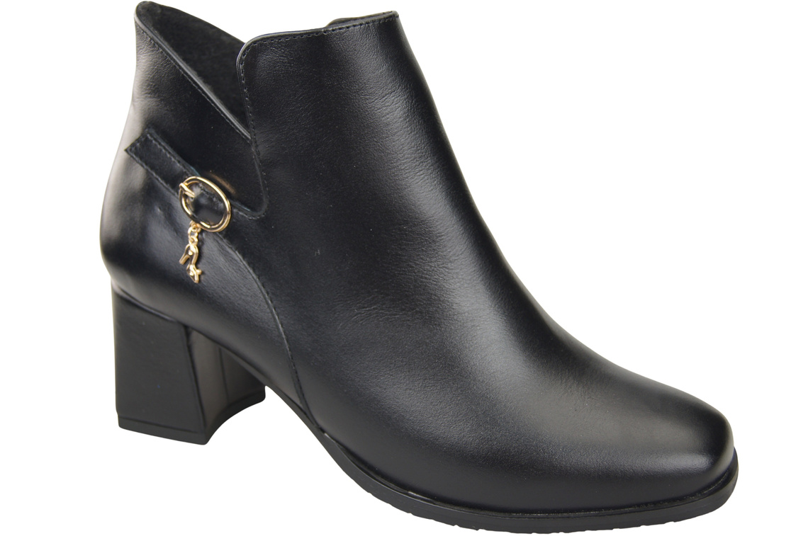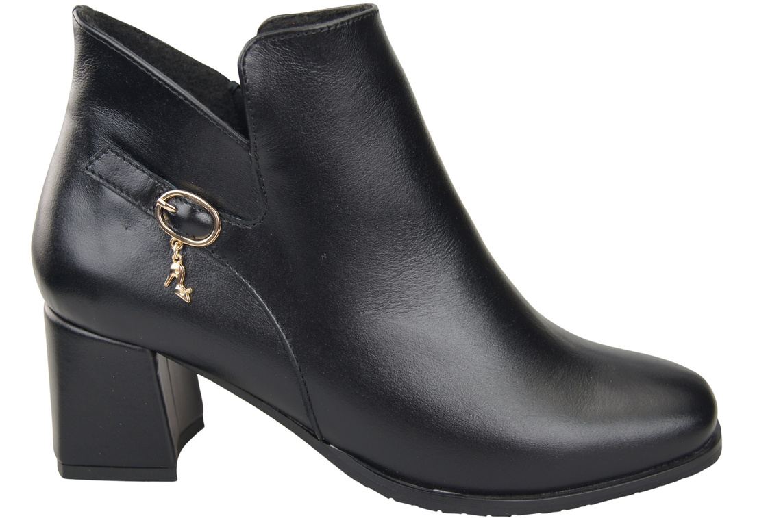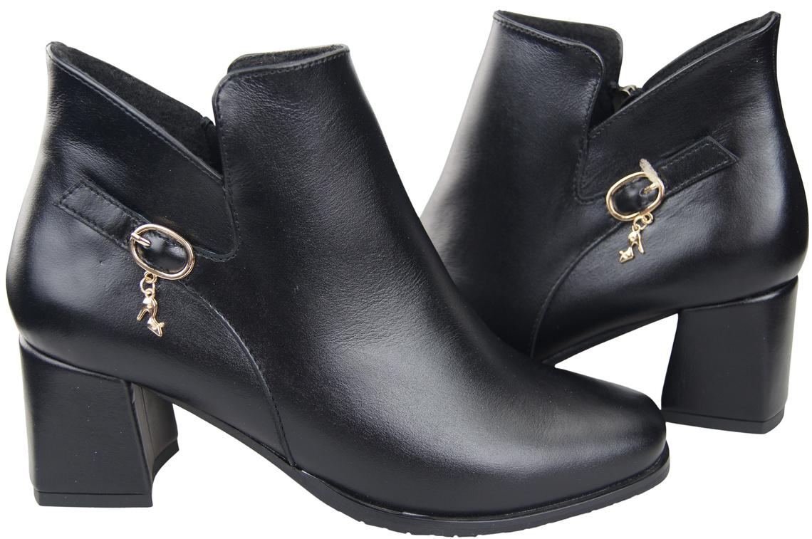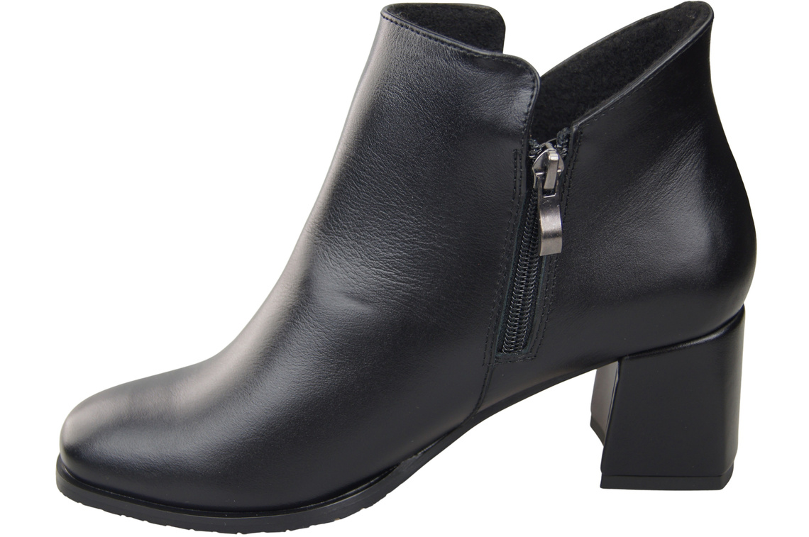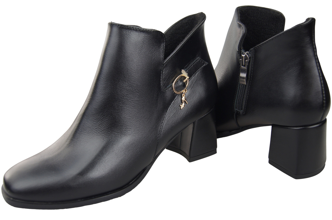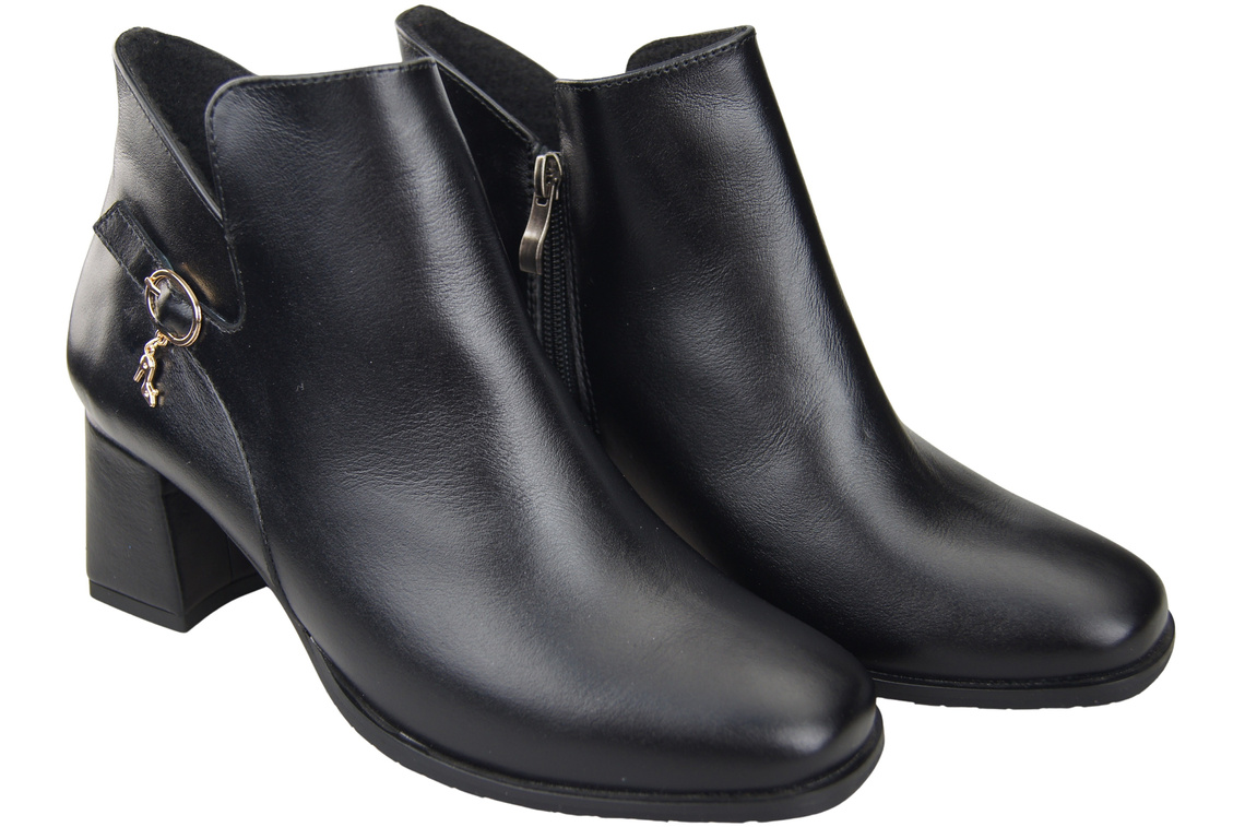 Botki Damskie Czarne ElitaBut 226 Z Skóra Naturalna, Ocieplane, Nosek Kwadratowy, Obcas Klocek