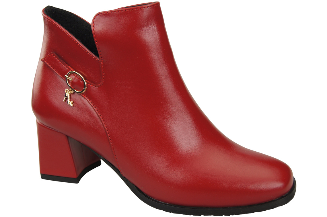 Botki Damskie Czerwone ElitaBut 226 Z Skóra Naturalna, Ocieplane, Nosek Kwadratowy, Obcas Klocek