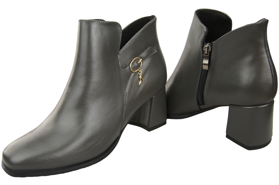 Botki Damskie Grafitowe ElitaBut 226 Z Skóra Naturalna, Ocieplane, Nosek Kwadratowy, Obcas Klocek